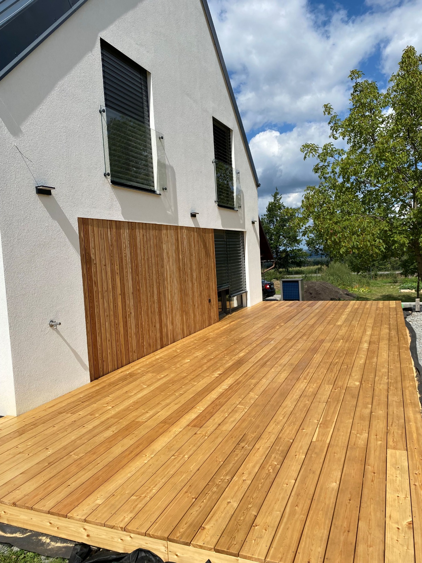 Modřín je našim lokálním stromem, rozšířen i na dálném severu. Výrazná kresba, "hřejivá" a přirozeně zapadající do našich končin. Výborná odolnost vůči povětrnostním vlivům. Životnost modřínových teras je při správné instalaci a údržbě 25-30let.